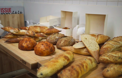 Dans chacun de ses emplacements, peu importe s’il utilise le blé local (comme aux États-Unis) et de l’eau locale, le miracle c’est le levain. La pâte lève plus lentement qu’elle ne le ferait avec de la levure commerciale, ce qui donne une saveur plus riche et une texture plus savoureuse que la plupart des pains que l’on trouve sur le marché.