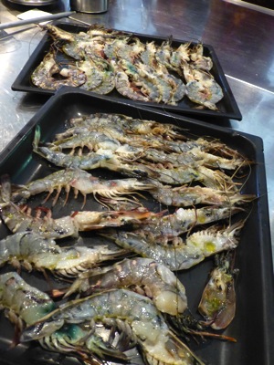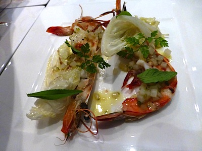 Les gambas au chou chinois et vinaigrette d’agrumes