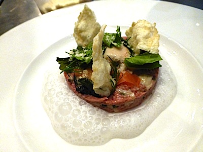 Le tartare de veau et huitres Mayonnaise, lait de coco et kefir