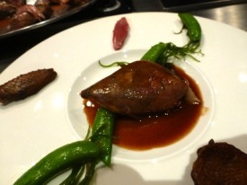 Le pigeon de Jakarta cuit au four sauce aux épices douces, algues sautées et galette de foie