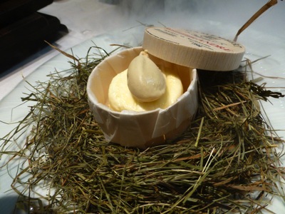 Le fameux Camenbert d’André, est servi avec une glace au foin. C’est une préparation signature du restaurant » Par André « , les chef Pourcel ont adoré…