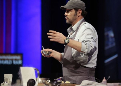 Chef cuisinier, artisan, enseignant. Aujourd’hui Thierry Marx est sur la scène d’Omnivore avec un chimiste, Raphael Haumont. Deux cerveaux pour une même passion. Bienvenue dans la cuisine du futur. Ils ont crée le Centre français d’innovation culinaire qui met la technologie au service des émotions culinaires. Thierry Marx vient aussi parler de son école parisienne, « Cuisine, mode d’emploi(s) », après avoir réchauffé l’huître avec une infusion de jasmin» puis du biscuit en mousse de lait de coco. Démo ébouriffante ! Thierry Marx se met au service du produit. Plus du tout d’excès ni d’exagération. La vérité dans sa simplicité. Il rappelle les bases du cuisinier : maîtrise du temps, du geste et du feu !