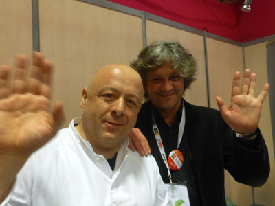 Thierry Marx quitte la scène sous les applaudissements. Le chef fend la foule, suivi par sa brigade légère. Il distribue, c’est selon, sourires et saluts, claque la bise ou serre la main.et pose pour le blog Pourcel !
