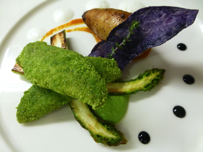 Le petit encornet farci de blettes aux saveurs du sud, asperges de Provence grillées,