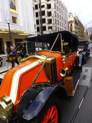 Dès la fin de l’après midi prenaient place au devant du Théâtre des Champs Élysées les voitures anciennes.