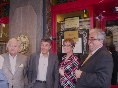 Régis Marcon le chef trois étoiles et Francis Attrazic, Président de l’AFMR (Association française des Maîtres Restaurateurs) ont remis y a deux jours, le titre de Maître Restaurateur au restaurant Tante Louise (Paris, VIIIe) du Groupe Loiseau.
