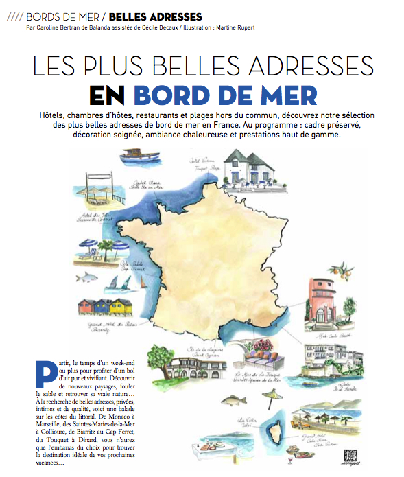Le magazine » Maisons de rêve » sort un Hors Série à quelques semaines de l’été référençant les plus beaux endroits en bord de mer tout autour de la France et ses nombreuses côtes maritimes. Qu’ils soient Palaces, restaurants étoilés, bars, bistrots, paillotes vous retrouverez les vrais beaux sites pour rêver au bord de l’eau.