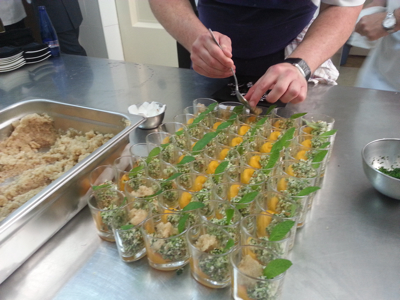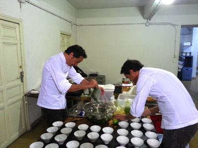 Les chefs avaient investi l’ensemble des sous-sols de la résidence de l’Ambassade, 60 convives étaient attendus pour un déjeuner à 4 mains, où chacun des chefs préparaient déjà l’ensemble de 20 tapas qui seraient servies à table.
