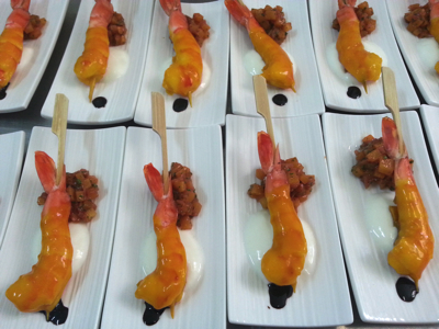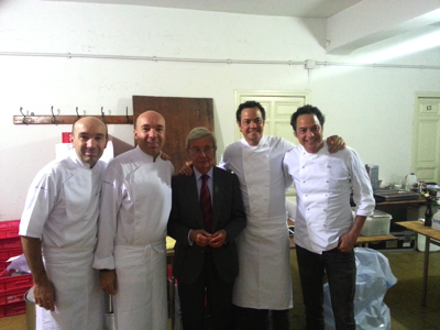 Jeudi matin depuis l’aube les chefs et les équipes de salle mises en place pour l’occasion s’activaient pour préparer un bel évènement culinaire assez unique. En effet Jean-François Pouget avait eu l’idée d’aller dénicher un couple de jumeaux chefs espagnols pouvant faire le pendant des frères Pourcel de Montpellier et ainsi de rapprocher deux cultures culinaires pour un déjeuner prestigieux.