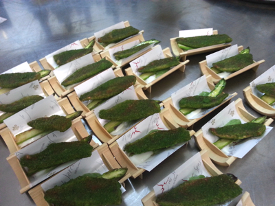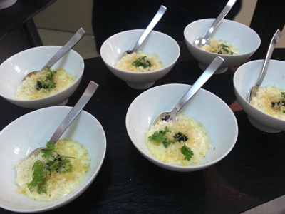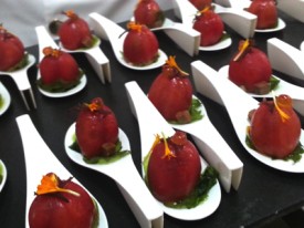 Un déjeuner très ludique, une envolée de goûts, de parfums, de couleurs, d’originalité préparé par les chefs du restaurant » El Cielo » à Barcelone et ceux du » Jardin des Sens » à Montpellier.