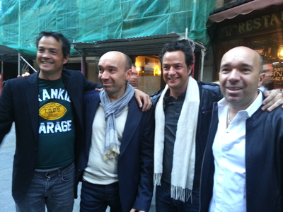 Les frères Pourcel et les Frères Torres entourant Rafael Anson Président National de l’Académie Internationale de Gastronomie Espagnole.