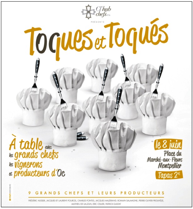 Toques et Toqués, samedi 8 juin, place du Marché-aux-Fleurs Montpellier. Réservation possible dans les restaurants participants ( Restaurant Sensation, Prouhèze Saveurs, Maison de la Lozère, Restaurant de Lauzun, Réserve Rimbaud, Jardin des sens, Brasserie du Corum, Castel Ronceray, Mazerand )