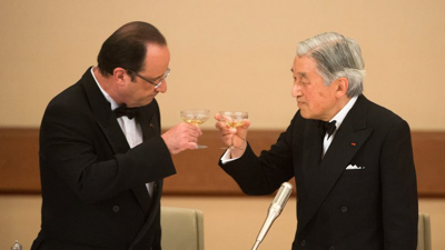 L’État français en smoking au dîner impérial en l’honneur de Hollande à Tokyo