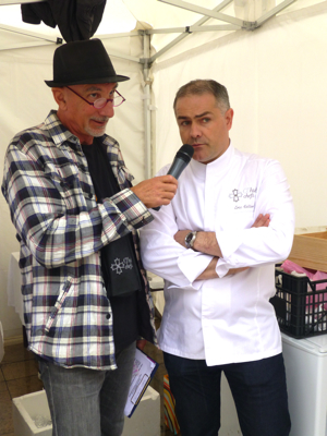 Les équipes du Jardin des Sens s’activaient déjà depuis les premières heures de la matinée pour préparer leur plat » Boeuf confit au Banyuls, polenta aux fruits secs, émulsion de champignon « , les chefs Jacques & Laurent Pourcel étaient présents derrière leur installations pour échanger avec le public, très courageux d’affronter le froid et la pluie.