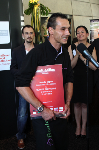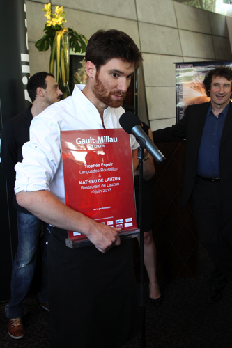 Le » Trophée des Espoirs » remis par le chef de Narbonne Lionel Giraud » La Table saint Crescent » à Narbonne, deux chefs primés encore, Olivier Bontemps du restaurant » O Bontemps » à Magalas dans l’Hérault, et Mathieu de Lauzun à Gignac dans l’Hérault aussi.