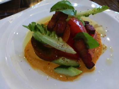 Tarte à la crème et lardons, pan con tomate furent une belle mise en matière. Une cuisine d’esprit terroir qui s’affirme par sa qualité, ses goûts, sa simplicité et sa précision.