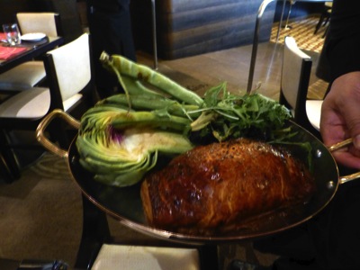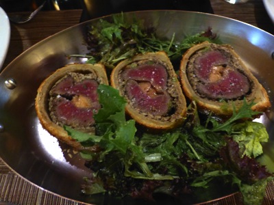 Nous continuerons par un boeuf en croûte, un plat classique de cuisine française accompagné d’une cassolette de jeunes artichauts. Foie gras, duxelle de champignons, c’était parfaitement réalisé et vraiment agréable de se retrouver dans cette ambiance avec des plats qui font du bien.