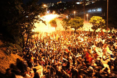 Et dès que l’hostilité au gouvernement en place devient trop pressante, les gaz lacrymogène arrivent, suivis par les lances à eaux. Les yeux commencent à brûler, beaucoup de manifestants se retirent dans les bars et restaurants le temps que les nuages de gaz disparaissent. Mais la vie ne cesse pas pour autant, la nourriture est partout et disponible, les petits stands continuent à servir et même dans des conditions incroyables.