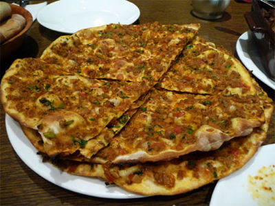 À Kadiköy sur la rive anatolienne de la ville, d’où vous aurez une vue imprenable sur le détroit d’Or et le Bosphore c’est un monde à part, tout est calme, de temps en temps une foule d’adolescents brandissant des drapeaux partent direction les lieux de manifestations. Ici on y déguste un plat divin le lahmacun : de la viande d’agneau haché et pimenté servi sur une croûte cuite au four, le tout accompagné d’une salade de persil plat et d’un trait de citron frais.
