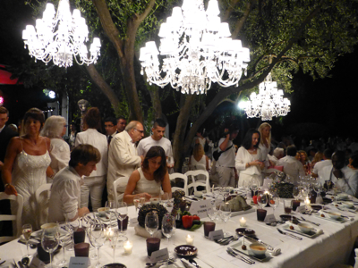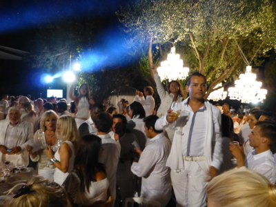 Terminons par la grande fête qu’organise chaque année le Chef Christophe Leroy des Jardins de Ramatuelle. Cette année particulièrement la » Soirée Blanche » avait sorti le grand jeu, celui qui marque les grandes soirées de Saint-Tropez. Ce dimanche 7 juillet, plus de 600 invités habillés de blanc se pressaient à l’entrée pour faire la fête.