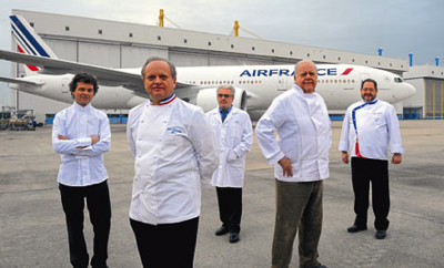 Même volonté du côté d’Air France qui invite tous les huit mois un grand chef à signer des plats pour ses vols long-courriers au départ de Paris. Jusqu’en octobre, c’est Michel Roth de L’Espadon, le restaurant du Ritz à Paris, qui est à la manœuvre. En première classe, les menus sont notamment élaborés par les chefs étoilés Joël Robuchon et Guy Martin.