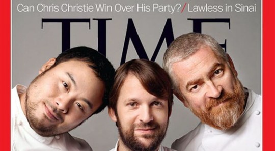 René Redzepi le danois, David Chang le New Yorkais et Alex Atala le Brésilien font la une et donc la couverture du prochain Time Magazine ( hors édition américaine ) sous le titre » Gods of Food: Meet the People who Influence What (and How) You Eat « , que l’on pourrait traduire par » les dieux de la nourriture : rencontrez les chefs qui influent sur ce (et comment ) vous mangez« .