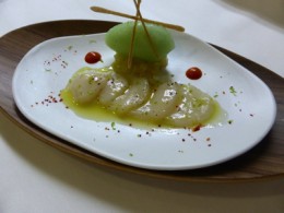 Escalopes de Saint-Jacques, citron vert, sorbet fenouil, tuile acide