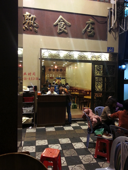 Il faut être initié ou accompagné par un local pour atterrir dans un des derniers – hot pot – de Canton. Ces restaurants de rue traditionnels ont pratiquement disparus, les quelques-uns qui subsistent sont encore très populaires. Il y règne une ambiance chaleureuse où tout le monde se mélange, l’habitant du quartier ou le riche industriel qui y débarque avec sa grosse cylindrée.