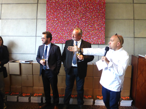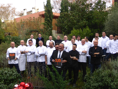 SUD, c’est le livre qui regroupe 30 chefs du Languedoc Roussillon et qui a été présenté hier au Jardin des Sens en présence des chefs et des vignerons sélectionnés pour accompagner les recettes.