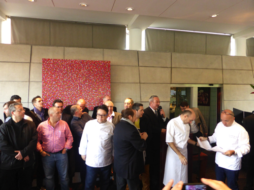 Jacques Cairel accompagné par Bertrand Fassio ( épaule ) et les chefs Gilles Goujon, Franck Putéla, Serge Chenet…