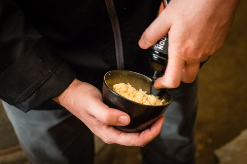Sifon-Evolution – 3 sauces et mousses en siphon avec trois types d’arômes : Choron, poivre et champignons.