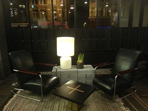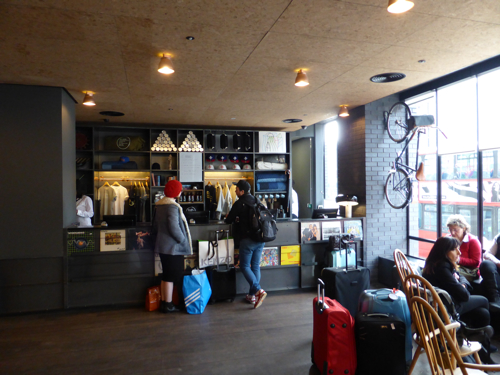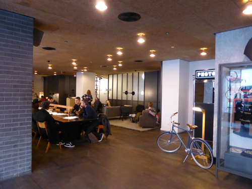 Dès 17 h le hall de l’hôtel se remplit, les nombreux et confortables canapés et bridges designs esprit scandinave. S’installent des groupes de jeunes qui attaquent l’after work, qui finira tard dans la soirée. Bien sûr un bar avec de savoureux cocktails anime une partie du lobby.