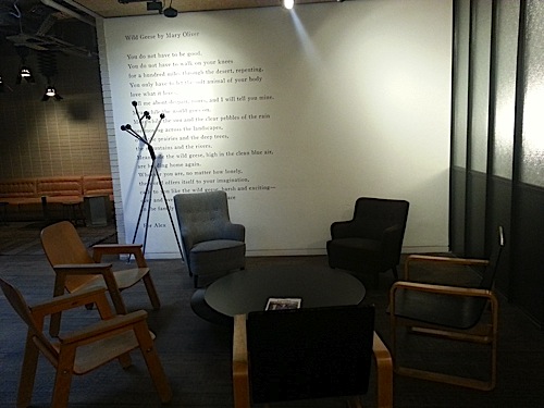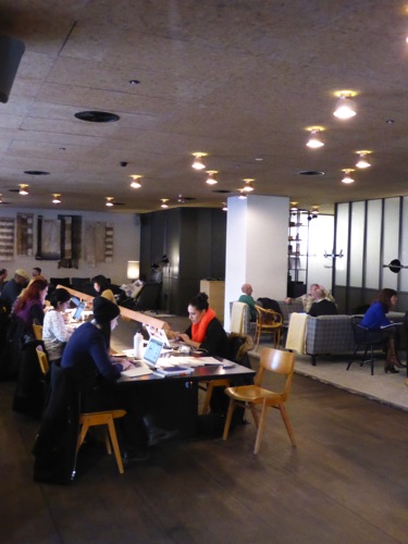 Dans la journée par contre, c’est la grande table d’hôte située près de la réception de l’hôtel qui est occupée par de jeunes étudiants qui viennent travailler sur le MacBook … style obligé !