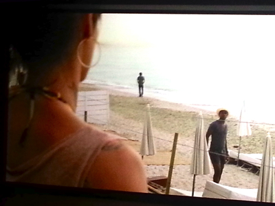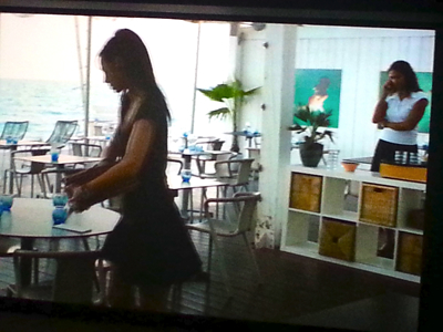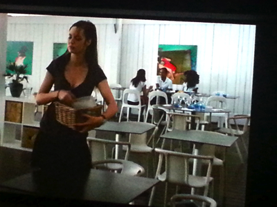 Louise Bourgoin en serveuse sur la plage de Carré Mer