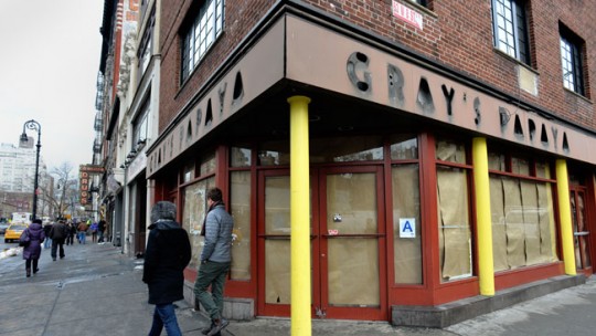 Victime de l’augmentation des loyers, Gray’s Papaya, installé à l’angle de la 6e avenue et de la 8e rue, qui a compté parmi ses fans le rocker Lou Reed, a mis la clé sous la porte. Sa formule «spéciale récession», deux hotdogs et un soda, régalait les affamés pour 4,95 $, il fonctionnait 24/24 h et était bien connu des Newyorkais. Le propriétaire Nicholas Gray a confirmé que la fermeture était due à l’augmentation du loyer mensuel. «Ils voulaient le faire passer de 30 000 à 50 000 dollars», a-t-il expliqué dans la presse locale.