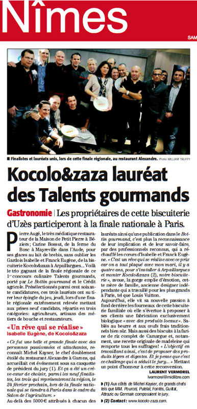 Ce sont les créateurs de Kocolo & Zaza qui remporteront le prix de Talent Gourmands 2014 pour leurs biscuits à la farine de riz de Camargue.