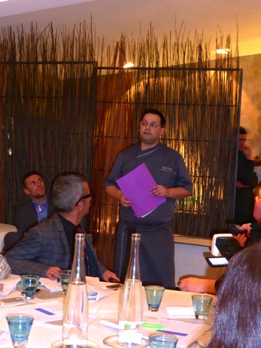 C’est Philippe Quintin, rédacteur en chef du Bottin Gourmand, qui était aux commandes de la journée. Son rôle: élire les » Talents Gourmands 2014 « . Concouraient 3 producteurs ( agriculteurs, viticulteurs, éleveurs, … ), 3 fabricants ( artisans ) et 3 chefs de cuisine. Tout ces talents avaient déjà étaient sélectionnés parmi un grand nombre de candidats qui avaient présenté leurs candidatures.
