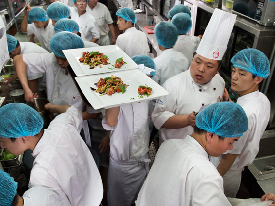 Ambassadeur de la nouvelle cuisine chinoise, le Pékinois Da Dong enseigne l’art du hachoir aux élèves de l’école de cuisine Yan Qing. 80 % d’entre eux rejoindront ensuite l’un de ses restaurants. En Chine, les cuisiniers fonctionnaires ont laissé place à de redoutables businessmen.