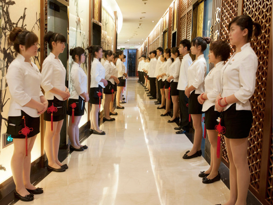Drole comme les serveuses sont alignées en début de journée. On dirait que c’est quand même assez stricte en Chine. Ou est-ce que pour les restaurants tres chics ?