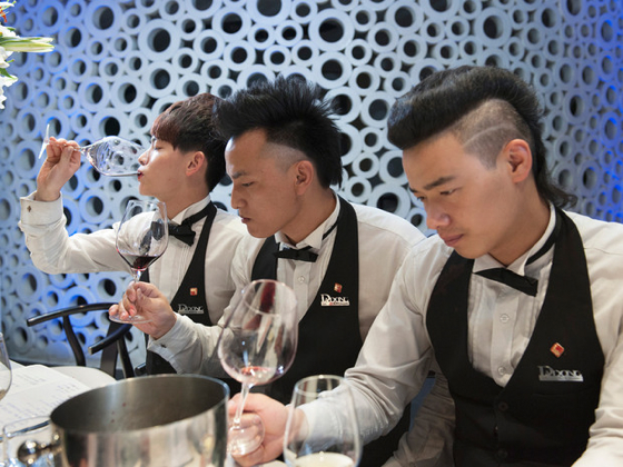 La Chine est devenue le premier marché pour les vins de Bordeaux. Mais dans les caves (ici les sommeliers d’un des restaurants de Da Dong), il y a aussi des crus locaux. D’ici à 2015, le pays devrait devenir le cinquième producteur viticole de la planète.