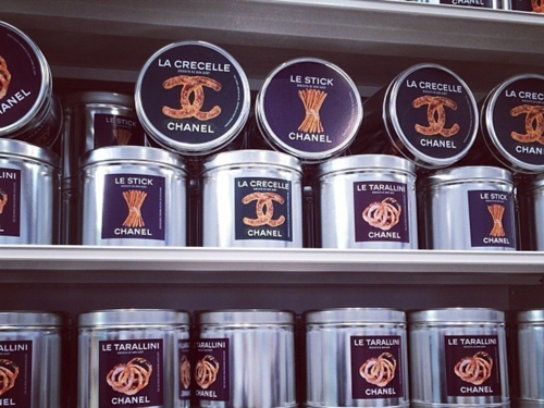Défilé entre boîtes de biscottes et de biscuits… mais signées Chanel !