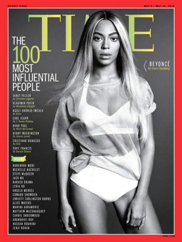 La chanteuse Beyoncé est distinguée cette année en couverture du prestigieux hebdomadaire américain. « C’est la boss », estime Sheryl Sandberg, la vice-présidente de Facebook qui signe sa fiche. Cette année, « Queen-B » a fait exploser les lois de l’industrie musicale en sortant un album par surprise.
