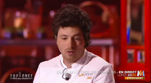 Ce lundi 28 avril, sur M6, le Biterrois va se frotter au Top Chef 2012, Jean Imbert, le gagnant emportera le » Choc des champions « .