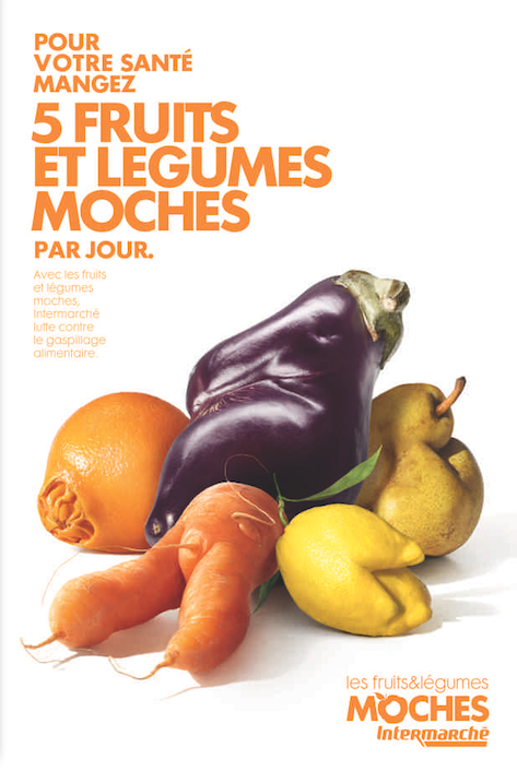 Afin de lutter contre le gaspillage alimentaire qui continue de grimper, l’enseigne française de grande distribution a demandé à l’agence de publicité Marcel de plancher sur une campagne qui pourrait empêcher de bons produits de finir à la poubelle. C’est ainsi que l’idée des » fruits et légumes moches » est née.
