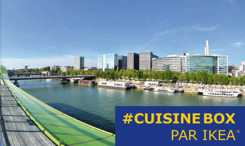 Du 14 au 25 mai 2014, IKEA, avec la complicité de ubi bene, installe et aménage trois CUISINEBOX. Sur les berges de Seine près du pont des Invalides, sur la terrasse du théâtre du Châtelet et sur le toit des Docks – Cité de la Mode et du Design, se dresseront des espaces de vie d’une superficie de 25m carré, pouvant accueillir de 7 à 12 convives.