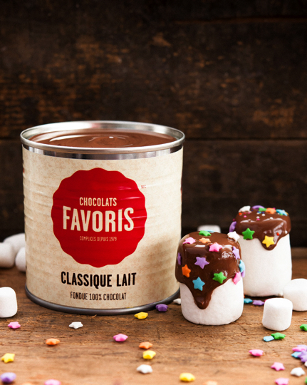 Il cherchait son produit révolutionnaire, celui qui mettrait les Chocolats Favoris dans l’assiette de tous les Québécois, voire de tous les Nord-Américains, pour commencer… Le voici! Les fondues ce sont les 12 saveurs d’enrobage qu’il est maintenant possible de ramener à la maison, en conserve, durant toute l’année. Disponibles en deux formats, elles sont parfaites pour une dégustation ou pour offrir en cadeau. La clef, la simplicité !