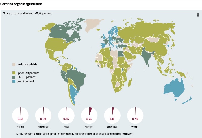 A l’échelle du monde entier, l’agriculture biologique représente moins d’1% de l’agriculture totale…