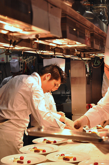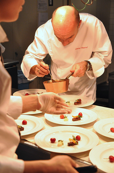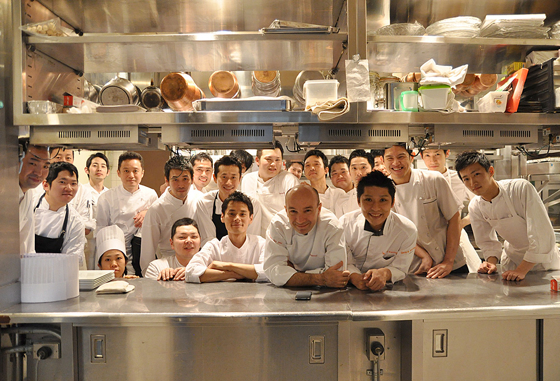 Laurent Pourcel et la brigade cuisine du restaurant « Sens & Saveurs » à Tokyo.