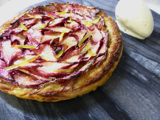 À la sortie du four, disposez dessus les zestes de citrons confits. Accompagnez la tarte d’une bonne glace vanille, personnellement nous aimons déguster cette tarte chaude, donc n’hésitez pas à la réchauffer avant de la servir.