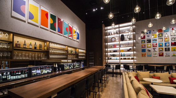 Le Aldo Sohm Wine Bar, est un vaste bar à vin dirigé par le sommelier Aldo Sohm qui propose d’associer la sélection de ses vins, à une carte très simple d’inspiration française, petites assiettes et planche de charcuterie, des paninis, des petites bouchées, des salades et une belle sélection de fromages. Repas du midi, qui débute aujourd’hui, propose quelques salades et paninis comme un avec tomates rôties et comté. A l’étage se trouve aussi une nouvelle salle à manger privée.
